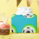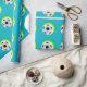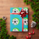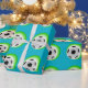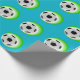 Umschlagpapier mit einem Fußball-Sport-Druck auf türkisfarbenem Hintergrund. Passen Sie dieses Objekt an oder kaufen Sie, wie es ist.