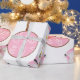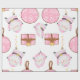 Niedliche, rosa Weihnachtsverpackung. Großer Santa in Rosa drucken. Schönes mädchenhaftes Papier. Rosa Weihnachten.