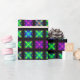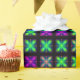 Digitales Kunstwiederholmuster / Wallpaper / Druck eines coolen Vaporwellenmusters mit Neon x Kreuzen in lila, grün und blau.