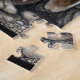Große Schleppangel mit dem langen Haar und einem Ohrring, der ein braunes Hut- und Pelzkap, unten lächelnd an einem kleinen blonden Elf ähnlichen Mädchen trägt. Schöne Illustration durch John Bauer von der schwedischen Ausgabe milder Tomtar Och Schleppangel (unter Elfen und Schleppangeln).