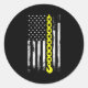 Schleppfahrer dünne gelbe Linie USA Flaggengeschen Runder Aufkleber