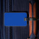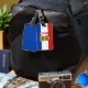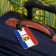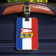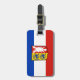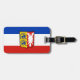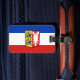 Gepäckmarke mit variantenreicher Schleswig-Holsteiner Flagge; Design mit horizontaler Tribfarbe in Rot, Weiß und Blau und in der Mitte mit dem Wappen des Staat