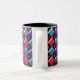 Diese glänzende Tasse aus Diamanten hat ein abstraktes Muster mit roten, hellblauen und dunkelblauen Diamanten. Jede Zeile wird durch eine Reihe schwarzer Diamanten getrennt. Jeder der schwarzen Diamanten hat ein Loch in der Mitte. Das obere links von jedem Single Diamant sieht aus, als ob es glänzend ist. Hier ist das lustige Stück, Sie können dieses Loch mit einer Auswahl von über 200 Farben füllen, um ein einzigartiges Design zu machen. Hier wurden die Löcher mit einer durchstechenden, leuchtend rosa Farbe als Beispiel gefüllt. Um Ihre Farbe auszuwählen und den Effekt auf das Design zu sehen, klicken Sie einfach auf den Button "Anpassen", gehen Sie in den Farbbereich und klicken Sie auf den Hintergrund und wählen Sie dann die Farbe aus, die Sie in das Design einfügen möchten. Sie können so viele Farben wie Sie möchten ausprobieren, bis Sie die für Sie geeignete finden. Das Design wird hier auf einer zweifarbigen Tasse mit schwarzem Interieur gezeigt, aber es ist auch in vielen anderen Tasse erhältlich, darunter Reisebügel und wunderschöne mattierte Tasse aus Glas.