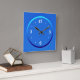 Eine schlichte blaue Uhr mit weißen Ziffern. Dieses vereinfachende Uhrendesign hat einen Aqua- und dunkelblauen Ring, der die Ns umgibt. Erhältlich in quadratischen und runden Formen.Geeignet für Ihre eigene Küche oder für jedes Zimmer im Haus. Auch als Geschenk für besondere Anlässe empfohlen.