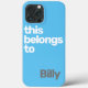 Handy iPhone blau minimale moderne Handy Gehäuse mit Namen Text leicht personalisiert werden. Schriftart Stil, Größe und Farben können geändert werden. Matching-Elemente verfügbar.