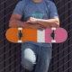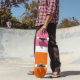 Schlichte Farbblockgestaltung in rosa, orange Skateboard
