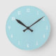 Helle hellblaue Uhr mit weißen Zahlen und schwarzen Händen