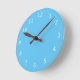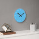Schlichte hellblaue Uhr mit schwarzen Zahlen und Händen