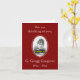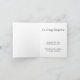 Diese einfache Begräbungs- oder Gedenkkarte enthält die Meldung "Wir denken an dich" und den personalisierten Namen und das Geburts-/Sterbedatum des verstorbenen Individuums. Die Meldung auf der Innenseite der Karte kann personalisiert sein. Es bietet auch Platz für ein personalisiertes Foto. Es könnte den Teilnehmern an der Lebensfeierlichkeiten von jemandem gegeben werden, der vor kurzem verstorben ist.
