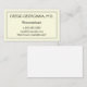 Dieses gepflegte, schlichte und berufliche Design der Visitenkarte zeichnet sich durch einen hellen Hintergrund und einen dreizeiligen Rahmen aus. Es kann von einem beruflichen wie einem Rheumatologen, Psychiater, Dermatologen oder Chirurgen verwendet werden. Name, Beruf und Kontaktdaten können personalisiert sein.