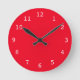 Bunte rote Uhr mit den schwarzen Händen und den weißen Zahlen