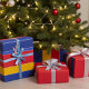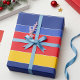 Schlichte, stilvolle Rot-Blau-Gelb- und Silberstre Geschenkpapier