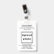 Schlichte Texte gestalten Abzeichen mit Mitarbeiter-Foto, das Sie für Sie und Ihre Mitarbeiter anpassen können. Gestaltungsfarben und -form sind schwarze Texte auf weißem Hintergrund und Rechteck im Portrait-Format. Um dieses Abzeichen anzupassen, geben Sie Ihren Firmennamen oder Firmennamen, Adresse, Telefonnummer, Mitarbeitername, Mitarbeitertitel, Mitarbeiter-ID-Nummer ein und laden Sie Mitarbeiter-Foto hoch. Nach der Texteingabe und dem Hochladen von Foto, bitte Karo das Aussehen auf der Vorder- und Rückseite. Wenn Ihnen das Aussehen gefällt, können Sie jetzt Ihre Bestellung aufgeben. Wenn Sie die Größe ändern und die Texte und das Foto verschieben müssen, um in dieses Abzeichen zu passen, ändern Sie bitte das Design-Tool. Sie können auch andere Änderungen am Design-Tool vornehmen, je nachdem, welches Erscheinungsbild Sie bevorzugen, z.B. die Hintergrundfarbe, die Schriftart-Farbe und den Schriftart-Stil.