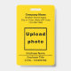 Schlichte Texte gestalten Abzeichen mit Mitarbeiter-Foto, das Sie für Sie und Ihre Mitarbeiter anpassen können. Gestaltungsfarben und -form sind schwarze Texte auf gelbem Hintergrund und rechteckige Formen im Portrait-Format. Um dieses Abzeichen anzupassen, geben Sie Ihren Firmennamen oder Firmennamen, Adresse, Telefonnummer, Mitarbeitername, Mitarbeitertitel, Mitarbeiter-ID-Nummer ein und laden Sie Mitarbeiter-Foto hoch. Nach der Texteingabe und dem Hochladen von Foto, bitte Karo das Aussehen auf der Vorder- und Rückseite. Wenn Ihnen das Aussehen gefällt, können Sie jetzt Ihre Bestellung aufgeben. Wenn Sie die Größe ändern und die Texte und das Foto verschieben müssen, um in dieses Abzeichen zu passen, ändern Sie bitte das Design-Tool. Sie können auch andere Änderungen am Design-Tool vornehmen, je nachdem, welches Erscheinungsbild Sie bevorzugen, z.B. die Hintergrundfarbe, die Schriftart-Farbe und den Schriftart-Stil.