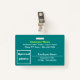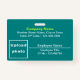 Schlichte Texte gestalten Abzeichen mit Mitarbeiter-Foto, das Sie für Sie und Ihre Mitarbeiter anpassen können. Gestaltungsfarben und -form sind gelb-grüne und weiße Texte auf aquamarinem grünen Hintergrund und Rechteck im Querformat. Um dieses Abzeichen anzupassen, geben Sie Ihren Firmennamen oder Firmennamen, Adresse, Telefonnummer, Mitarbeitername, Mitarbeitertitel, Mitarbeiter-ID-Nummer ein und laden Sie Mitarbeiter-Foto hoch. Nach der Texteingabe und dem Hochladen von Foto, bitte Karo das Aussehen auf der Vorder- und Rückseite. Wenn Ihnen das Aussehen gefällt, können Sie jetzt Ihre Bestellung aufgeben. Wenn Sie die Größe ändern und die Texte und das Foto verschieben müssen, um in dieses Abzeichen zu passen, ändern Sie bitte das Design-Tool. Sie können auch andere Änderungen am Design-Tool vornehmen, je nachdem, welches Erscheinungsbild Sie bevorzugen, z.B. die Hintergrundfarbe, die Schriftart-Farbe und den Schriftart-Stil.