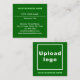 Visitenkarte, die Sie für Ihre Kunden oder Kunden anpassen können, um einfach Ihre Geschäftsadresse und Kontaktinformationen zu finden. Designfarben und Formen sind hellgrüne und weiße Texte auf grünem Hintergrund und quadratischer Form. Die Inhalte auf der Vorderseite sind schlichte Textinformationen und auf der Rückseite sind Ihr Firmenname und Ihr Firmenlogo. Um diese Visitenkarte anzupassen, geben Sie Ihren Firmennamen, Ihren Namen, Ihren Titel, Ihre Adresse, Telefonnummer, E-Mail, Website oder Social Media-Seite ein und laden Sie Ihr Firmenlogo hoch. Nach der Texteingabe und dem Hochladen des Logos, bitte das Aussehen auf der Vorder- und Rückseite Karo. Wenn Ihnen das Aussehen gefällt, können Sie jetzt Ihre Bestellung aufgeben. Wenn Sie die Größe ändern und die Texte und das Logo verschieben müssen, um auf diese Visitenkarte zu passen, wechseln Sie bitte im Designwerkzeug. Sie können auch andere Änderungen im Design-Tool nach dem Aussehen dieser Visitenkarte vornehmen, die Sie bevorzugen, z. B. die Änderung der Hintergrundfarbe, der Schriftart-Farbe und der Schriftart-Stil.