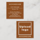 Visitenkarte, die Sie für Ihre Kunden oder Kunden anpassen können, um einfach Ihre Geschäftsadresse und Kontaktinformationen zu finden. Designfarben und Formen sind hellbraune und weiße Texte auf braunem Hintergrund und quadratischer Form. Die Inhalte auf der Vorderseite sind schlichte Textinformationen und auf der Rückseite sind Ihr Firmenname und Ihr Firmenlogo. Um diese Visitenkarte anzupassen, geben Sie Ihren Firmennamen, Ihren Namen, Ihren Titel, Ihre Adresse, Telefonnummer, E-Mail, Website oder Social Media-Seite ein und laden Sie Ihr Firmenlogo hoch. Nach der Texteingabe und dem Hochladen des Logos, bitte das Aussehen auf der Vorder- und Rückseite Karo. Wenn Ihnen das Aussehen gefällt, können Sie jetzt Ihre Bestellung aufgeben. Wenn Sie die Größe ändern und die Texte und das Logo verschieben müssen, um auf diese Visitenkarte zu passen, wechseln Sie bitte im Designwerkzeug. Sie können auch andere Änderungen im Design-Tool nach dem Aussehen dieser Visitenkarte vornehmen, die Sie bevorzugen, z. B. die Änderung der Hintergrundfarbe, der Schriftart-Farbe und der Schriftart-Stil.