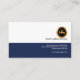 Ein übersichtliches Design mit einem Doppeltonfarbhintergrund. Der oberste blaue Teil hat ein abstraktes Imitatgoldhahnlogo mit seinem Handelsnamen darunterliegend. Der untere weiße Teil enthält Informationen der ganzer die Karte. Eine kleine vertikale weiße Linie sitzt mitten in Ihrem Namen- und Jobtitel auf dem links, gegen Ihre Kontaktdetails am gegenüberliegenden Ende. Jedes Detail wird ein Kugelpunkt zugeteilt. Nahe dem Boden der Karte haben Sie ein Slogan tagline.