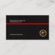 Eine einfache schlichte Karte behalten zu einem Minimum. In einem schwarzen Hintergrund mit einer hellen Linie Schmutz, sind die einzigen betoneneinzelteile eine rote Linie und Knöpfe für Ihre Kartendetails. Ihr Namen- und Jobtitel wird an der obersten links Ecke der Karte, gerade über der roten Linie untergebracht. Direkt unter ist Ihr Handelsname. Ein Imitatgoldikonenlogo ist- südwärts von diesem. Zuletzt werden Ihre Kontaktdetails zu den drei roten Knöpfen befestigt.