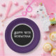 Ein schlichter, lila Hintergrund mit einem schwarz-grauen Kreis in der Mitte für Geburtstagsgrüße macht eine klassische Papiertafel, die mit dem Dark Goth mit Lila Rose Geburtstagsensemble passt.