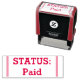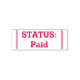 Dieses einfache Design aus Gummi-Briefmarke beinhaltet die Nachricht "STATUS: Bezahlen". Es könnte vielleicht verwendet werden, um anzugeben, dass eine Rechnung oder Rechnung vollständig bezahlt wurde.