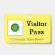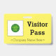 Dieses konservative Abzeichen-Design enthält die Meldung "Visitor Pass", einen benutzerdefinierbaren Firmennamen oder eine andere benutzerdefinierte Nachricht. Ein solches Abzeichen könnte vielleicht dazu verwendet werden, darauf hinzuweisen, dass eine Person ein bekannter und autorisierter Gast oder Besucher eines Unternehmens oder Arbeitsplatzes ist. [~Z0000307]