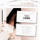 Schlichtes Weiß mit Rose-Gold-Dekor und Logo Visitenkarte