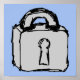 Ein Schloss-Symbol in Schwarz und Grau auf einer blauen Farbe. In dieser Line-Abbildung wird ein Schloss mit einem Schlüsselloch dargestellt, in hellgrau mit schwarzer Kontur. Dieses Schloss-Symbol wurde mit einem Grafiktablett skizziert.