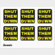 Schließt sie ernstlich ab, es ist Zeit, ein anti-nuklearer Slogan in fett-gelben Buchstaben, ohne nukleares Symbol auf schwarzem Hintergrund.