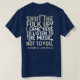Ein dunkler T - Shirt mit einem praktischen Zweck: Machen Sie die Person, die hinter Ihnen sitzt, während der Konzerte auf stille Art zu behalten. Wollen Sie wirklich, um zu wissen, wo sie Abendessen aßen? Oder ob hassen sie ihren Job? Und müssen wir zu ihren Handygesprächen mit ihrem Dermatologen hören? Finden sie überhaupt eine Lösung zu ihrem itching? Dieses Shirt kann helfen.