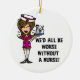 Eine niedliche Krankenschwester-Design mit einer braunen Krankenschwester mit einem Tablett mit Wasser und einem Krug und Text, der lautet "Wir wären alle noch schlimmer ohne Krankenschwester" auf T - Shirt, Säcken, Tasse, Aufklebern, Karten, Magneten und anderen Pflegeartikeln und Geschenken.