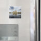 Souvenir Foto Magnet mit dem historischen Eilean Donan Castle an einem ruhigen Morgen mit Reflexion im stillen Wasser an der Western Küste von Schottland, nahe der Isle of Skye.