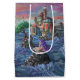 Wenn du Meerjungfrauen Liebe, dann ist dieses Bild für dich. Das von Traci Van Wagoner gemalte Schloss von Meerjungfrau besticht durch eine Meerjungfrau mit lila Haar vor dem Haus und eine Meerjungfrau mit grünem Haar, die sich auf den Felsinseln sonnt, während eine andere Meerjungfrau mit rosa Haaren vor einem Schloss schwimmt, hinter dem sich ein lila, orangefarbener und gelber Sonnenuntergang befindet. Diese wunderschöne und skurrile Fantasiekunst ist ein großartiges Geschenk und eine atemberaubende Dekoration für Ihr Büro oder Ihre Zuhause.