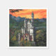 Schloss Neuschwanstein Kunstdrucke, Plakate, Geschenke und Accessoires zeigen unsere ursprüngliche Kunst von Traci Van Wagoner des berühmten gotischen Revival Palastes aus dem 19. Jahrhundert, der auf einem schroffen Hügel über dem Dorf Hohenschwangau bei Füßen im Südwesten Bayerns, Deutschland, bei Sonnenuntergang sitzt. Dieses wunderschöne Schlossgemälde ist ein Geschenk für alle, die Burgen, Schlösser, Fantasie und bunt Lieben haben, der Palast ist in mehreren Filmen präsent und inspiriert von Disneylands Schläfenschloss und späteren ähnlichen Bauten.