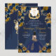 Navy Blue & Gold Floral Elegante Quinceanera Birthday Einladung