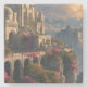 Große Bergburg in den Hügeln, die auf einem kostenlosen Marmor-Untersetzer entworfen wurde