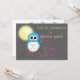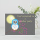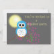Ein niedliches Zeichnen einer blauen Eule auf einer geblühten Niederlassung. Hintergrund des mittleren Graus mit einem blassen Mond und Sternen. Das einer netten Schlummer-Party Einladung. Sie können den hinteren Text redigieren, wenn sie gewünscht werden.
