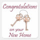Schlüssel für neue Zuhause Quadratischer Aufkleber