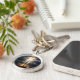 Schlüsselanhänger wird mit einem schönen spirituellen Kreuz mit Sonnenstrahlen Kunstdruck gezeigt. Passen Sie dieses Objekt an oder kaufen Sie, wie es ist. Lizenziertes Bild