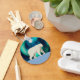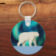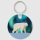 Ein niedlicher Eisbär (Ursus maritimus), in einem einfachen primitiven oder naiven Stil gemacht, geht auf dem Polareis spazieren, die Aurora Borealis (Northern Lights) leuchten hell im Hintergrund. Passen Sie Ihren eigenen Text auf der Rückseite an.