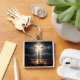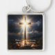 Schlüsselanhänger wird mit einem schönen spirituellen Kreuz mit Sonnenstrahlen Kunstdruck gezeigt. Große Größe Anpassen Sie dieses Objekt oder kaufen Sie, wie es ist. Lizenziertes Bild