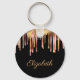 Rose Gold und goldene Folie Tropfen mit personalisiertem Text auf schwarzem Hintergrund.