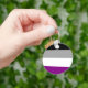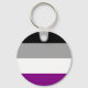 Basic Button Schlüsselanhänger mit Strichflagge für asexuelle Darstellung mit schwarzem, grauem, weißem und lila gestreiftem Muster