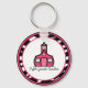 Ein Schlüsselanhänger mit dem Logo des Pink Schoolhouse in einem Zebra-Rahmen mit rosafarbenem Schnitt. Im Text steht "Lehrer der fünften Klasse".