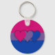 Basic Button Schlüsselanhänger mit BiSexuality-Stolperflagge mit rosa, lila und blauen Streifen, gestreiftes Muster mit Herzdesign
