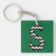 Ein sehr stilvoller Schlüsselanhänger mit dem ersten 'S' in einem Zickzack Schwarz-Weiß-Muster. Der angezeigte Hintergrund ist dunkelgrün, Sie können jedoch über die Schaltfläche Bearbeiten aus einer großen Auswahl an Hintergrundfarben auswählen. Sie können auch einen anderen Typ oder eine andere Form von Schlüsselanhänger wählen oder die Initiale rotieren, um eine bessere Passform zu erhalten - Spaß haben!