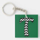 Ein sehr stilvoller Schlüsselanhänger mit dem ersten 'T' in einem Zickzack Schwarz-Weiß-Muster. Der angezeigte Hintergrund ist dunkelgrün, Sie können jedoch über die Schaltfläche Bearbeiten aus einer großen Auswahl an Hintergrundfarben auswählen. Sie können auch einen anderen Typ oder eine andere Form von Schlüsselanhänger wählen oder die Initiale rotieren, um eine bessere Passform zu erhalten - Spaß haben!