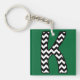 Ein sehr stilvoller Schlüsselanhänger mit dem ersten "K" in einem Zickzack Schwarz-Weiß-Muster. Der angezeigte Hintergrund ist dunkelgrün, Sie können jedoch über die Schaltfläche Bearbeiten aus einer großen Auswahl an Hintergrundfarben auswählen. Sie können auch einen anderen Typ oder eine andere Form von Schlüsselanhänger wählen oder die Initiale rotieren, um eine bessere Passform zu erhalten - Spaß haben!