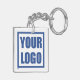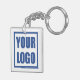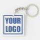 Vollständig anpassbarer Logo-Template doppelseitigen Schlüsselanhänger auf Weiß.