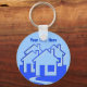 Maßgeschneiderte Grafik von Häusern in blauen Farben Schlüsselanhänger. Bereit für Ihren Text. Großartige Werbeartikel für Immobilien, Hypothekenmakler, Bauunternehmer, Bauindustrie und alle im Zuhause-Geschäft tätigen Personen. Siehe dazu passende Tasse, Schaltfläche, Button und Krawatte im MVDesign-Store.